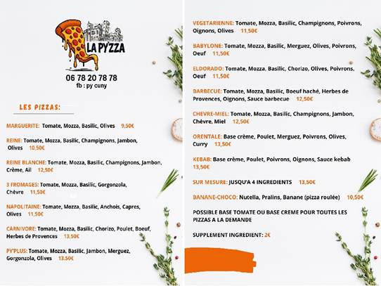 Tous les mardis à partir de 18h, la PY’ZZA s’installera devant le périscolaire Voir la carte.
